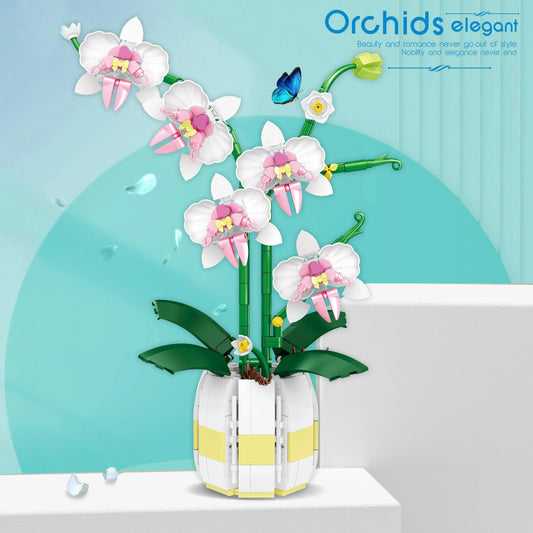 Orchid Flower Building Blocks Model Set Romantic Flowers Wildflower Bouquet Bricks Toys Home Decoration Children Holiday Gift