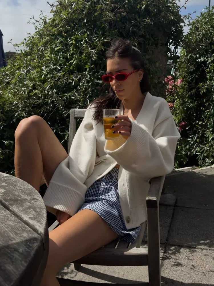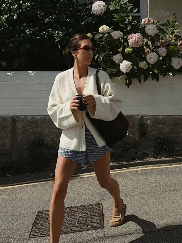 Fashion Single Breasted Buckle Cashmere Cardigan Women Casual V Neck Button Knitted Sweater New Autumn Female Commuter Knitwear